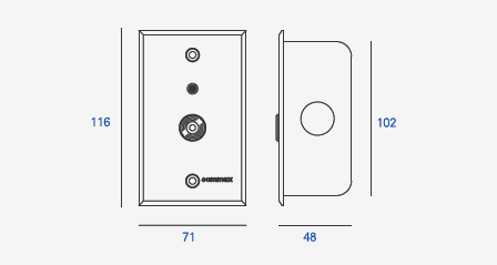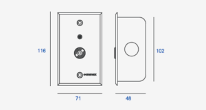 FEATURES Emergency switch (restroom) Waterproof SPECIFICATION Power source Power supplied by JNS-4CS/CNS-8CS Mount type Flush-mounted type Wiring 2 wire Dimension(mm) 71(W)×116(H)×93(D)