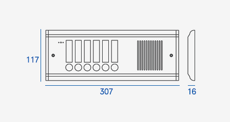 FEATURES Call system for operating room FUNCTION A memo section per button. Hands-free function. Flush-mounted type. SPECIFICATION Power source Power supplied by JNS-36O Mount type Flush-mounted type Wiring 6 wires Distance 100m Dimension(mm) 305(W)×117(H)×16(D)